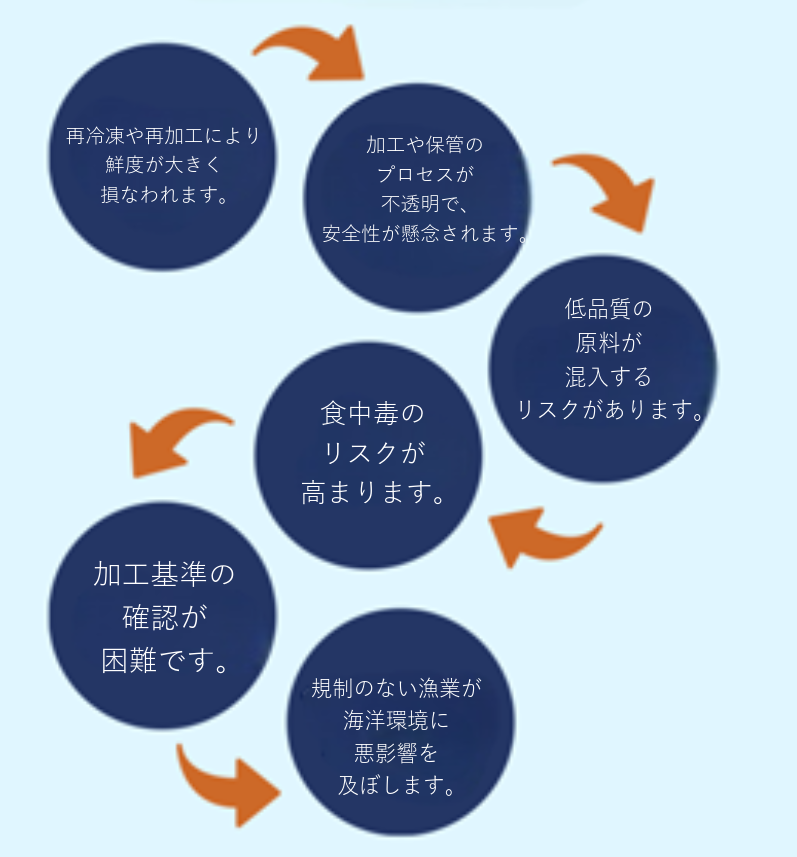 実際、最近の報告書では、ロシアや中国など一部の国における水産物加工の信頼性が